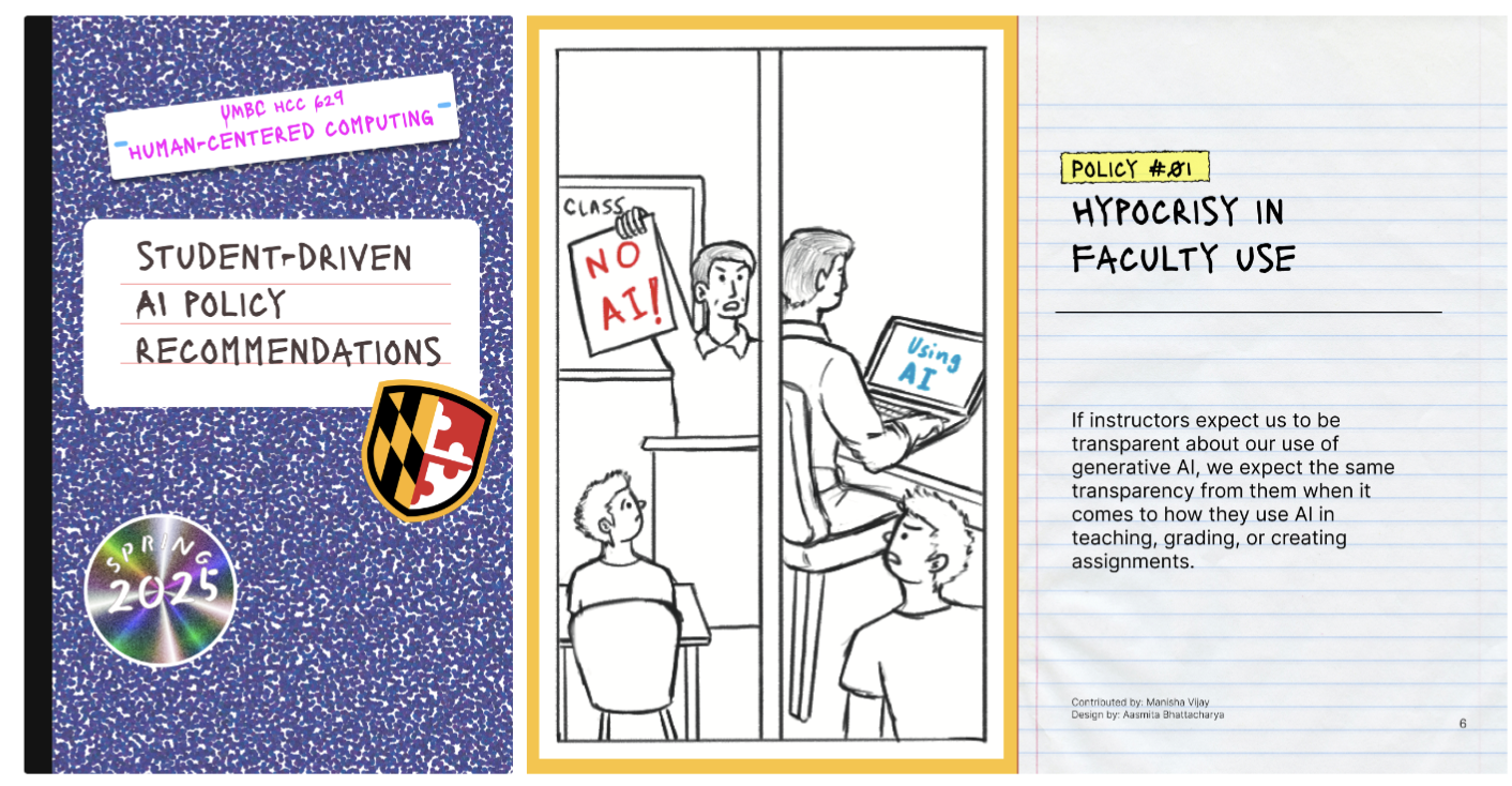 Most classroom AI policies are written without student input and focus on penalizing misuse. This paper examines how participatory, student-led AI policy design can address this disconnect. Through a three-part participatory workshop series in a graduate design studio, students co-developed ten policy recommendations, later visualized in a zine.