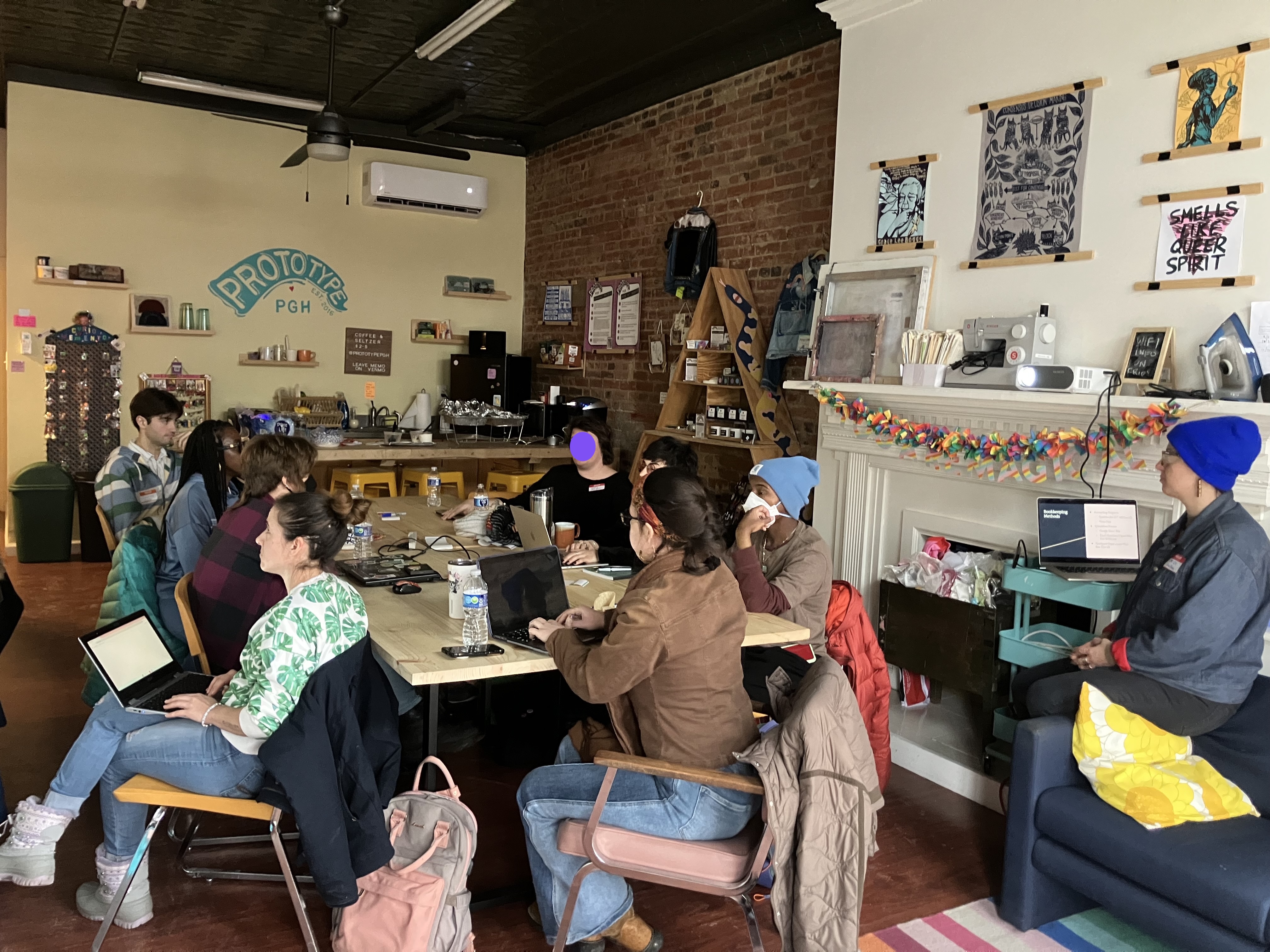 Through community-centered workshops at a feminist makerspace, this study examines how entrepreneurs collectively navigate AI-assisted business planning—revealing tensions between instant outputs and reflective sensemaking, and how peer support enables adoption, adaptation, and refusal of AI tools.